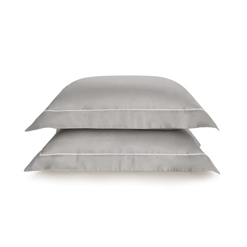 O Jogo de Fronhas Trussardi Enrico combina elegância e vivacidade em um design clássico que facilita a composição com outros itens da coleção. Confeccionado em percal 300 fios, 100% algodão egípcio, possui tecido mercerizado e sanforizado, garantindo um toque suave e luxuoso. O acabamento refinado conta com aplicação de vivo nas fronhas e na dobra feita, proporcionando um visual sofisticado. Com a fronha Enrico, seu quarto ganha leveza e requinte, elevando o conforto ao máximo nível de qualidade da Trussardi.